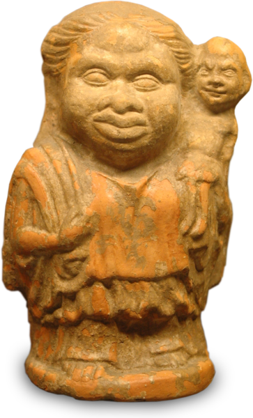 A similar figure occurs on early Babylonian seal cylinders, where it is given the Sumerian name “the god Nugidda” or “the dwarf.” This figure is sometimes depicted dancing before the goddess Ishtar. It is a matter of speculation whether this Mesopotamian dwarf-figure was the inspiration for the Egyptians and Phoenicians or whether it was the other way around.