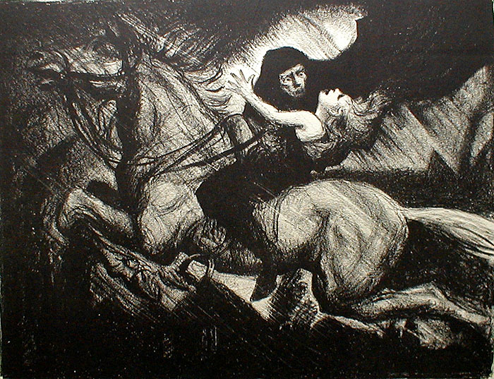 Goethe’s poem tells of a father riding through the forest with his feverish young son. The son is aware of the presence of the foreboding presence of the Erlking, who calls to him to leave his father and join him in his faery abode. The father, however, believes the son is merely hallucinating. In the end, the father arrives at home, but not before his son dies in his arms.